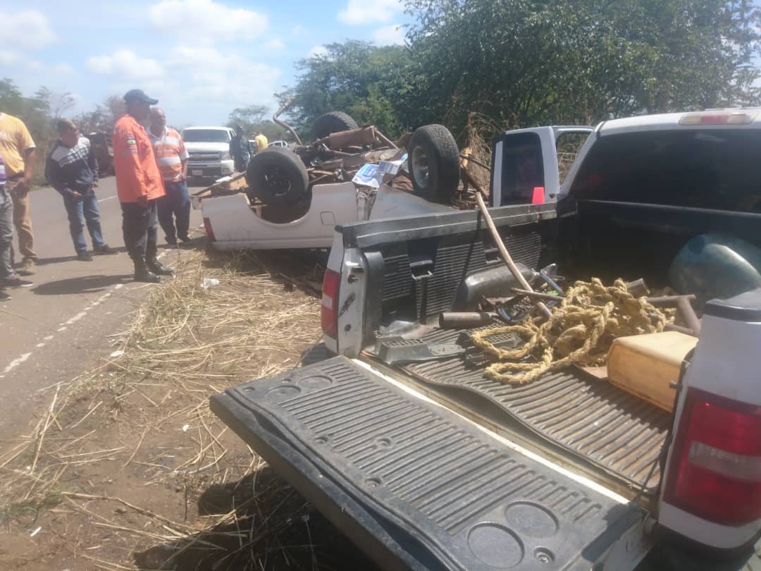 Las unidades involucradas en el accidente son una camioneta marca Ford, modelo FX4, color Blanco, placas A45BG1E conducida por Juan Carlos Valles de 61 años, residenciado en la ciudad de Valle de la Pascua. En el mismo carro transitaba Jose Moncada de 44 años y Wilfredo Moncada de 61 años.