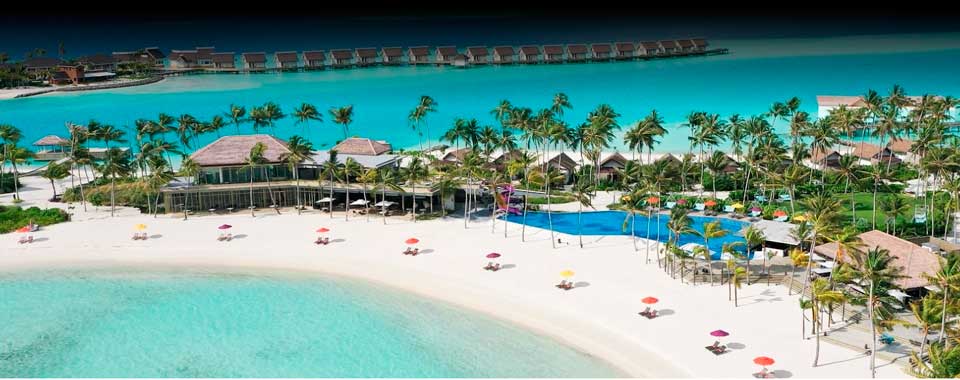 Hoteles como el Hard Rock Maldivas disponen de instalaciones de lujo para que disfrutes al máximo de tus vacaciones. Solo hay que ver esta vista aérea del complejo para hacerse una idea de lo idílico del lugar.