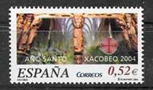 ESPAÑA, AÑO 2004, SELLO Nº 4095 DEL CATÁLOGO EDIFIL. «XACOBEO 2004» PÓRTICO DE LA GLORIA Y NAVE CENTRAL DE LA CATEDRAL DE SANTIAGO DE COMPOSTELA.