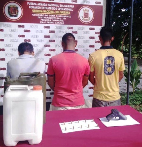 De acuerdo a un parte oficial emanado de las autoridades, indica, que los aprehendidos formaban parte de un Grupo Estructurado de Delincuencia Organizada (GEDO), a quienes les fue incautado: un (01) facsímil de arma de fuego, diez (10) cartuchos y cuarenta (40) litros de gasolina, que sería comercializada a precios exorbitantes.