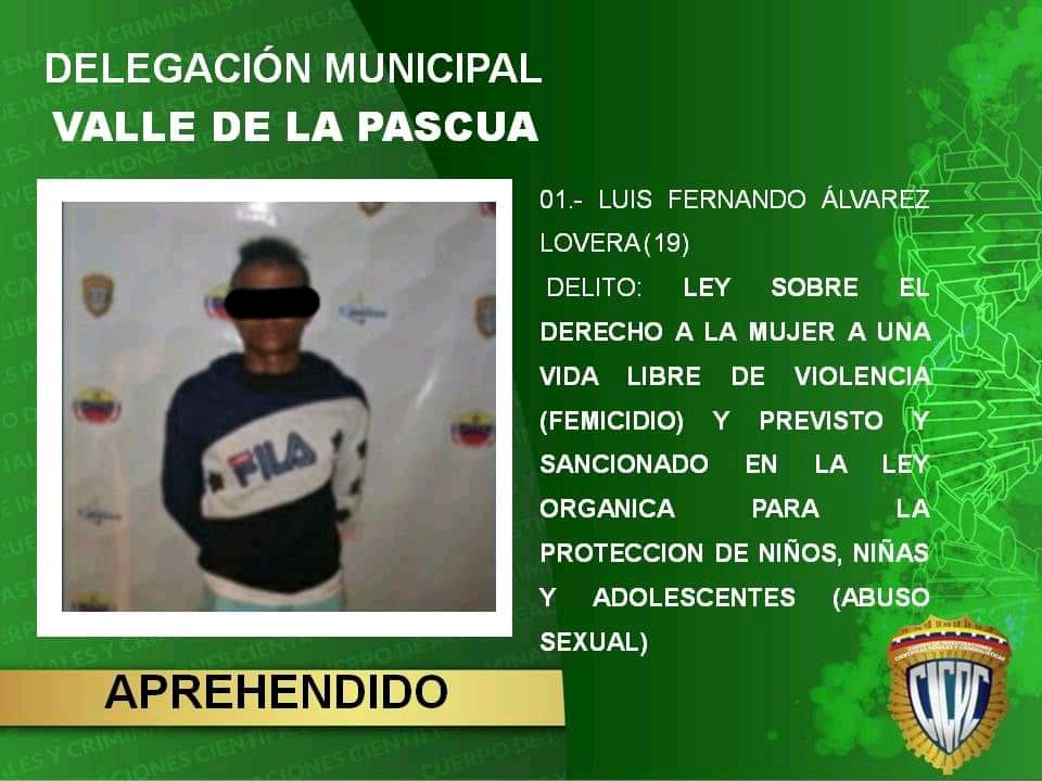 En otra zona de La Pascua fue capturado Luis Fernando Álvarez Lovera de 19 años, apodado «Tinito» quien al parecer también participo en el atroz crimen.