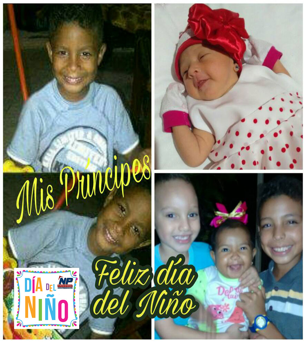 - Feliz día del niños quiero muchísimos a mis hijos y mi sobrino. Toxeily María Alvarez Rojas .Tomás Enrique Alvarez Rojas . Orlando Jose Flores Flores .