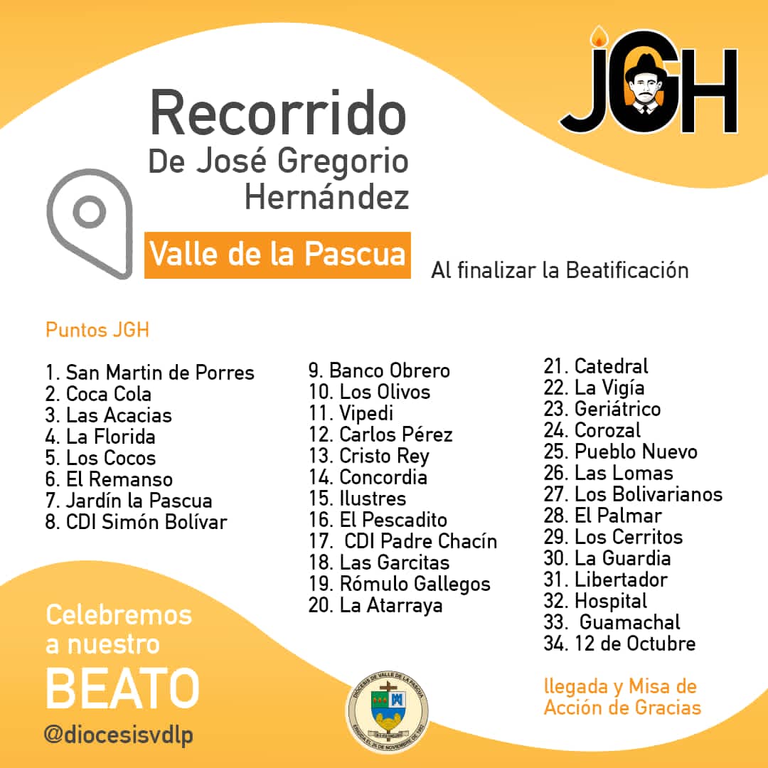 En honor a la beatificación del Dr. José Gregorio Hernández se realizará un recorrido con la imagen del beato por la ciudad de Valle de la Pascua.