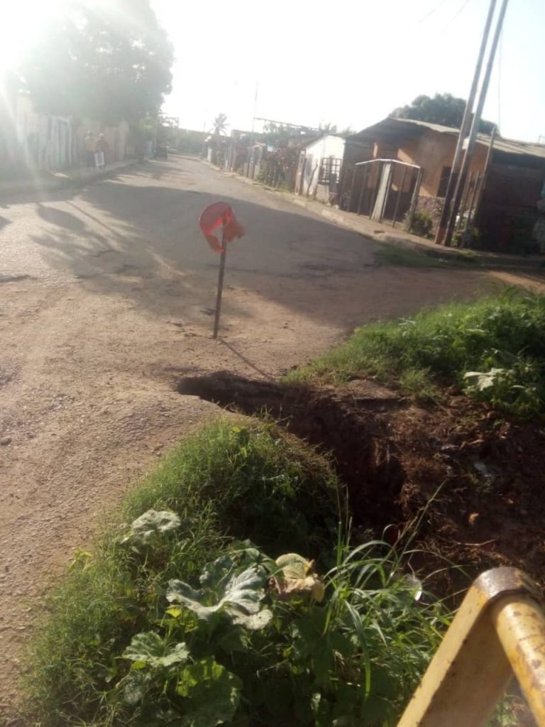 Los huecos, zanjas y protectores de drenajes colapsados dificultan el paso de vehículos a través de esa vía que comunica con Autoconstrucción y la calle 4 de Las Garcitas.
