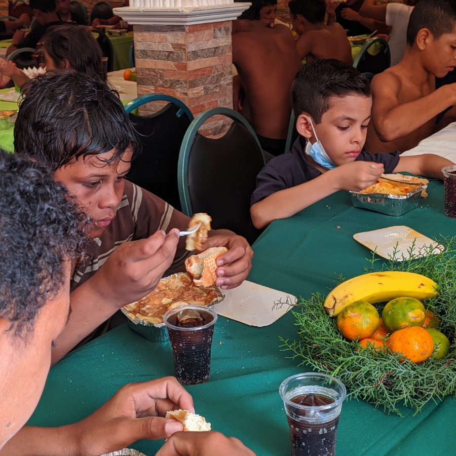 Rico almuerzo y las palabras de Marielys Roldan sirvió para invitarlos a confiar siempre en el altísimo, en el Dios que todo lo puede «en mi camisa esta un corazón solo con ojos y sin boca, esto es un corazón que observa y es mudo. No cuestiona, no juzga, no humilla, no maltrata y no dice cosas que no debe, para no dañar a estos niños», dijo.