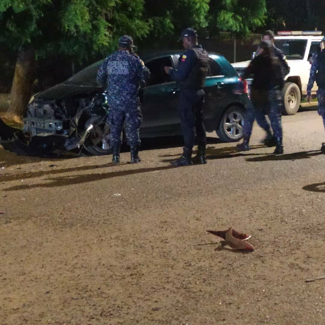 Según la información colectada en el lugar del hecho, un vehículo modelo Yaris, marca Toyota, color Verde, placas AA784BJ conducido por Edmundo Reyes de 53 años el cual transitaba de Sur a Norte, fue impactado de manera frontal por una motocicleta que venía de Norte a Sur.