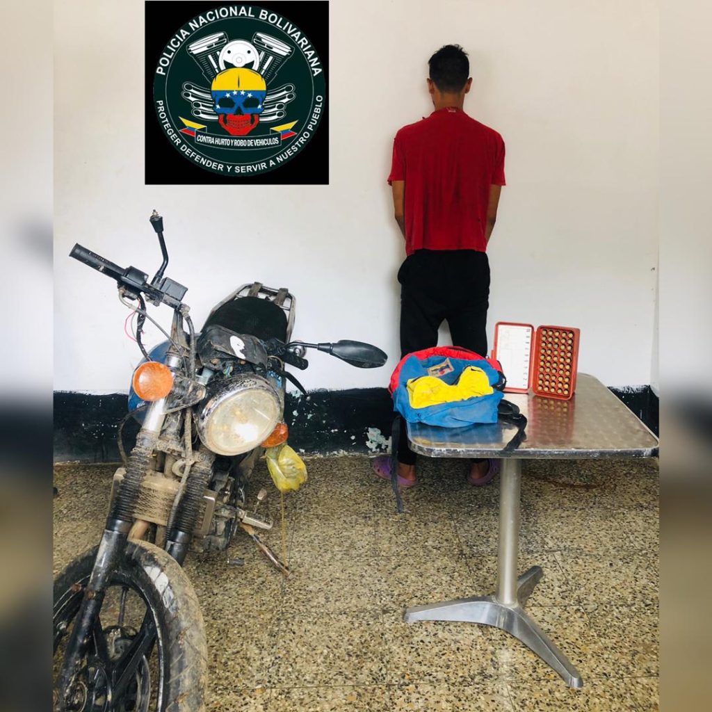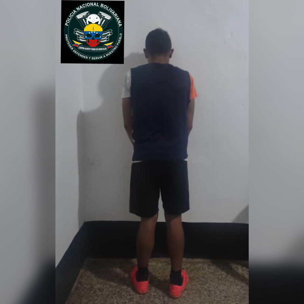 El día 01 de agosto del 2022 en horas de la tarde, fue capturado Luis Alberto Rodriguez de 50 años, en la calle Venezuela del sector Carlos Perez, logrando decomisar una motocicleta y un teléfono celular con la sim card incluida.