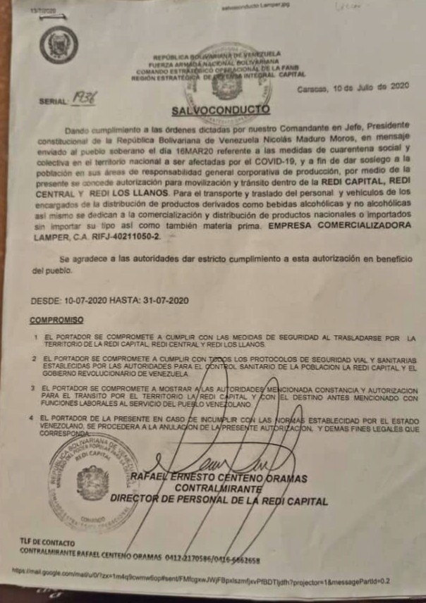 Franklin Carrillo. @fj.carrillo Funcionarios de la Policía Nacional Bolivariana (PNB) destacados en Chaguaramas, estado Guárico lograron decomisar una carga de licor la cual era transportada violando la Gaceta Oficial 6.519 en la cual se declara Estado de Alarma para atender la emergencia sanitaria del Coronavirus (Covid-19).