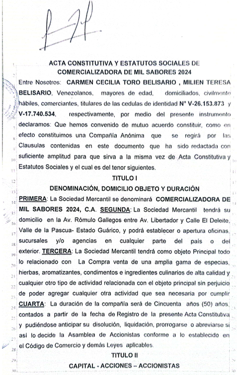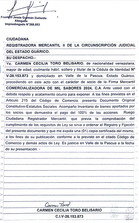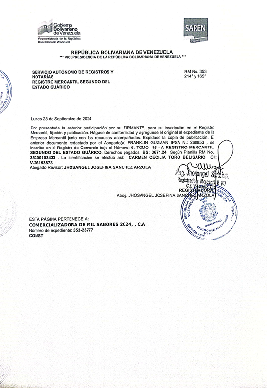[:es]REGISTRO MERCANTIL. Comercializadora De Mil Sabores 2024, C.A. [:] [:es]Registro Mercantil COMERCIALIZADORA DE MIL SABORES 2024, C.A. [:]