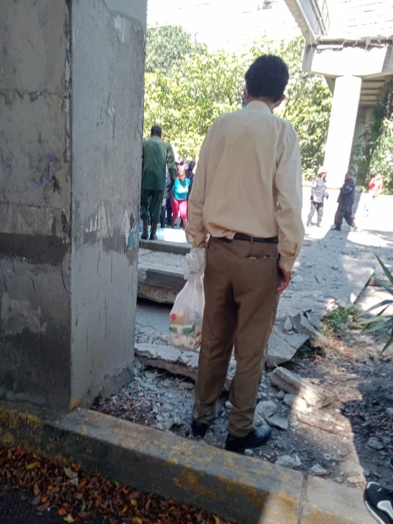 Conductores reportaron este lunes 4 de enero el desplome de una pasarela ubicada en San Agustín del Sur, en Caracas, y que une la localidad con Parque Central. Bomberos y paramédicos que se encontraban en el lugar trasladaron a tres personas heridas al hospital Pérez Carreño.