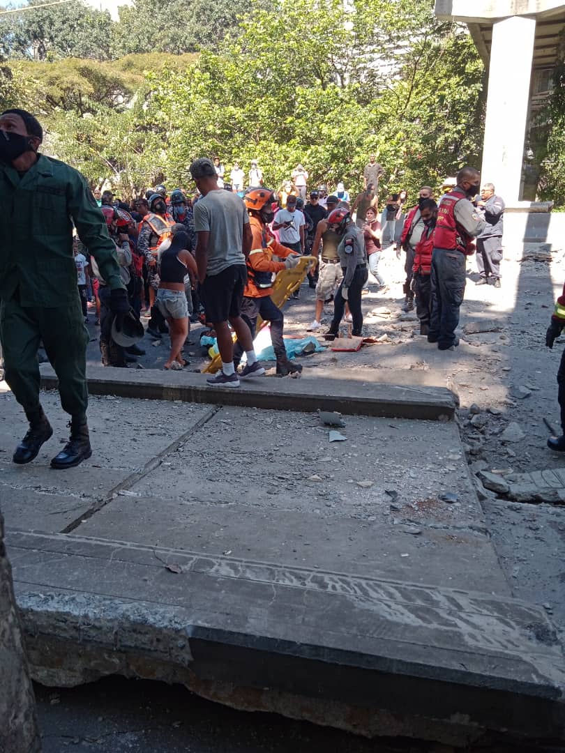 Conductores reportaron este lunes 4 de enero el desplome de una pasarela ubicada en San Agustín del Sur, en Caracas, y que une la localidad con Parque Central. Bomberos y paramédicos que se encontraban en el lugar trasladaron a tres personas heridas al hospital Pérez Carreño.