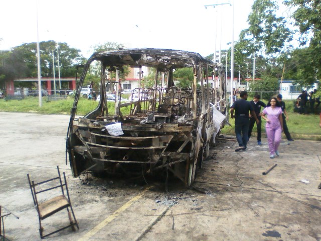 Grupos violentos irrumpieron en el núcleo y tras amenazar al vigilante incendiaron de los autobuses del transporte universitario