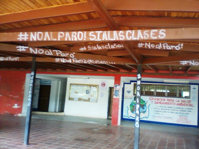«A las tres de la mañana me avisaron de este ataque y llame a uno de los directivos, y la respuesta que me dio fue que eran las tres de la mañana, luego a las seis nos trasladamos a la universidad donde nos negaban el acceso y cuando al fin el vigilante nos abrió, nos dimos cuenta que en las escaleras habían alambres cruzados y pupitres, dentro la universidad esta toda rayada y dice si al paro ya las clases y fue firmado por el movimiento estudiantil del Psuv,»