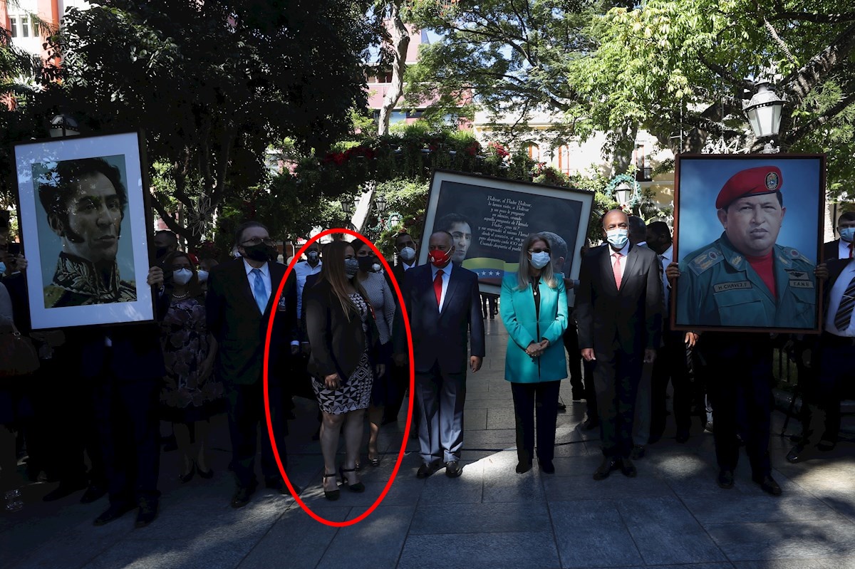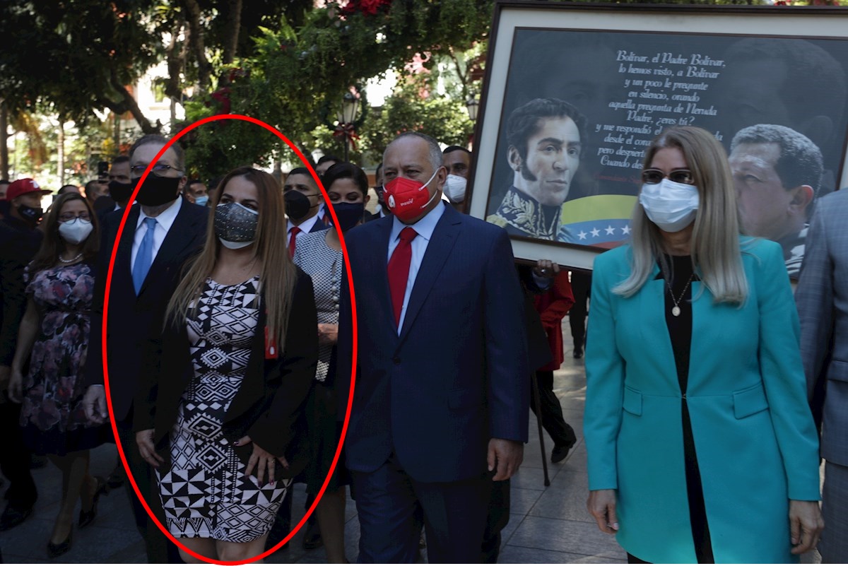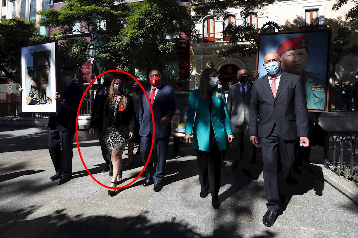 La funcionaria chavista, quien se caracteriza por siempre llevar el cabello con rulos, en esta oportunidad se lo planchó. Además, usó un vestido estampado de cuadros y zapatos de tacón alto.
